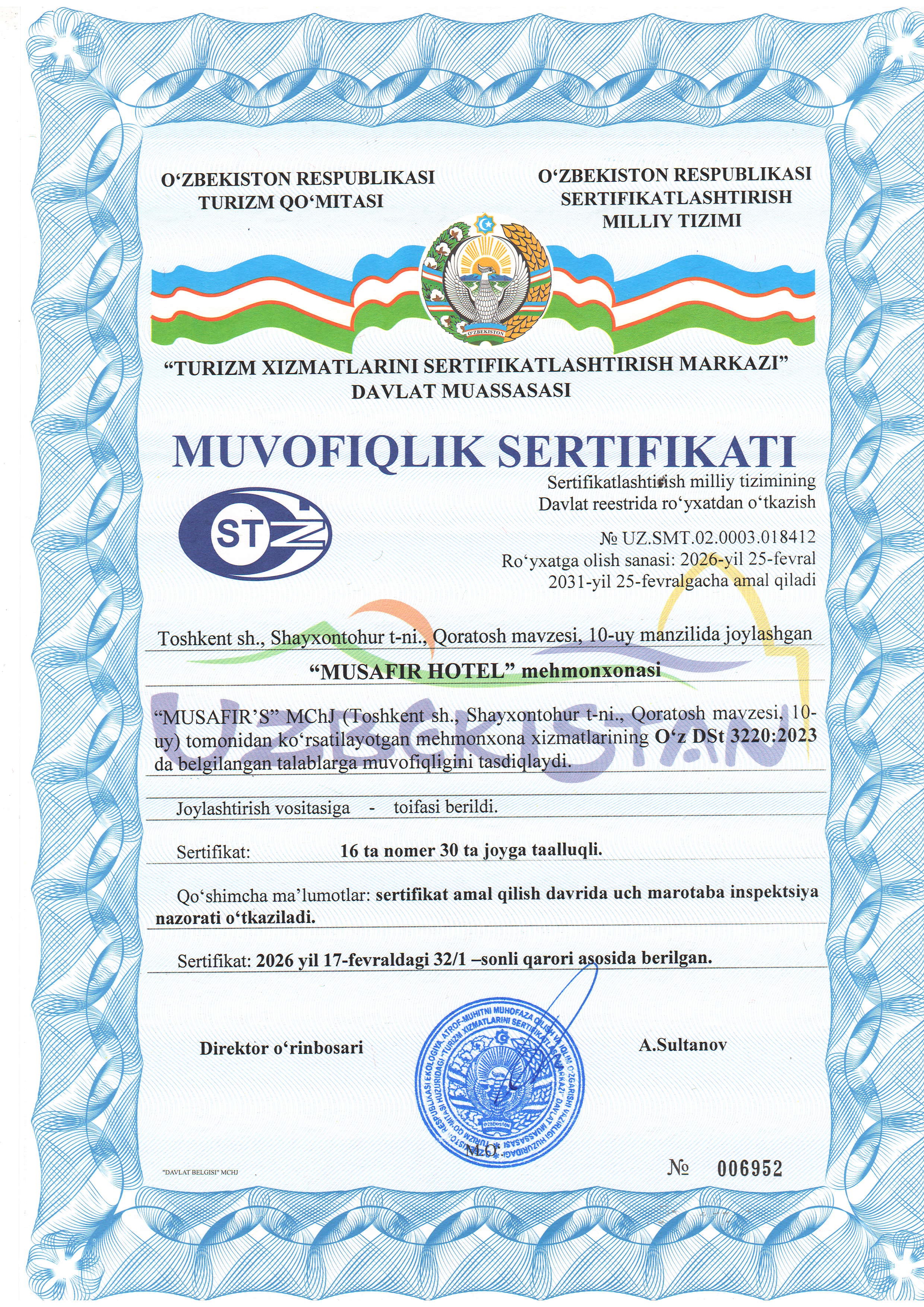 Сертификат подтверждает, что отель предоставляет мусульманам услуги, такие как коврик для молитв, звонок-будильник, четки и указатель киблы.